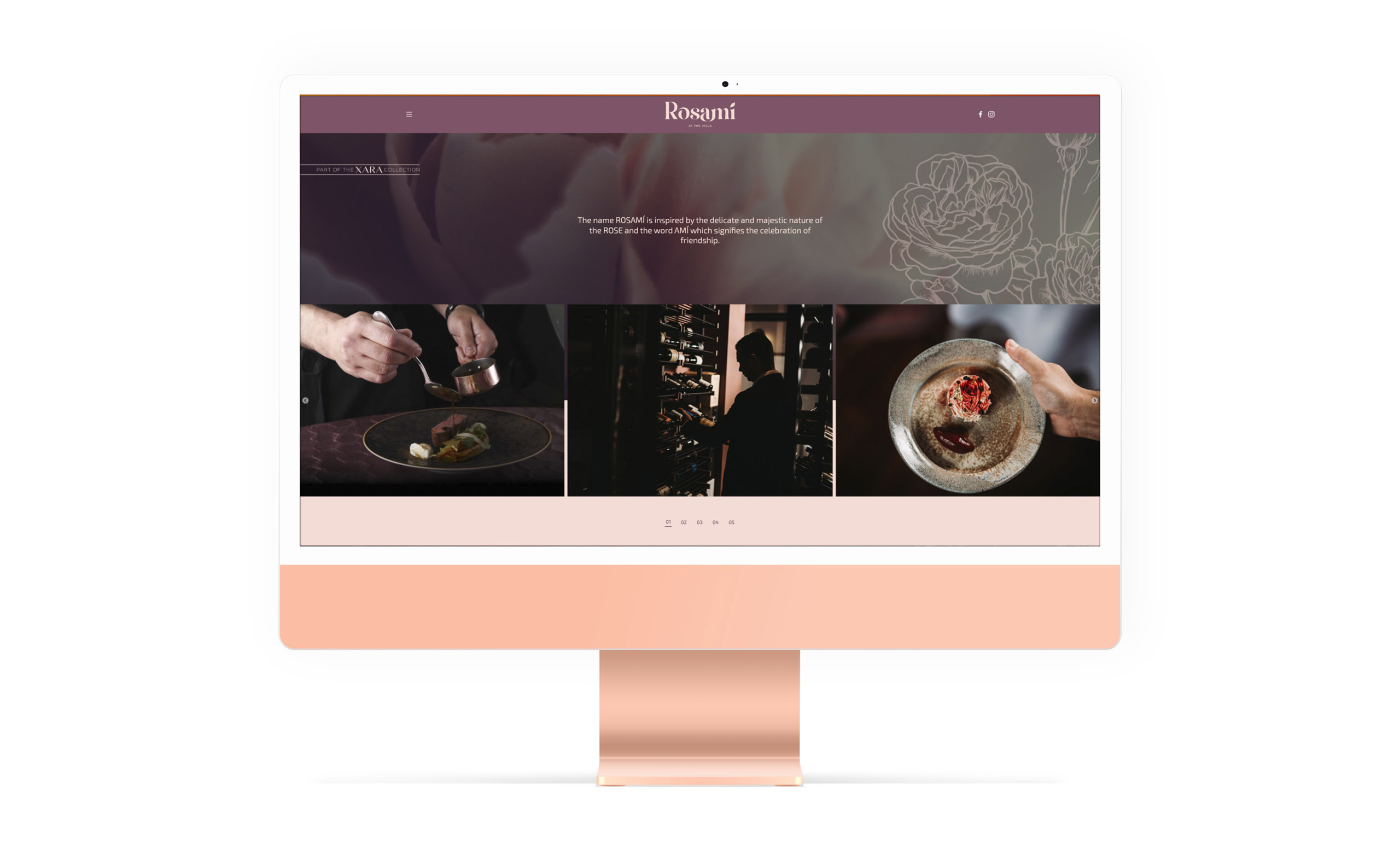 The name ROSAMÍ crafted by Concept Stadium, is inspired by the delicate and majestic nature of the rose flower, while the word AMÍ signifies the celebration of friendship. Such thinking process was transported to a logo design that evokes a feeling of an unfolded rose, with a complementary warm colour palette.
